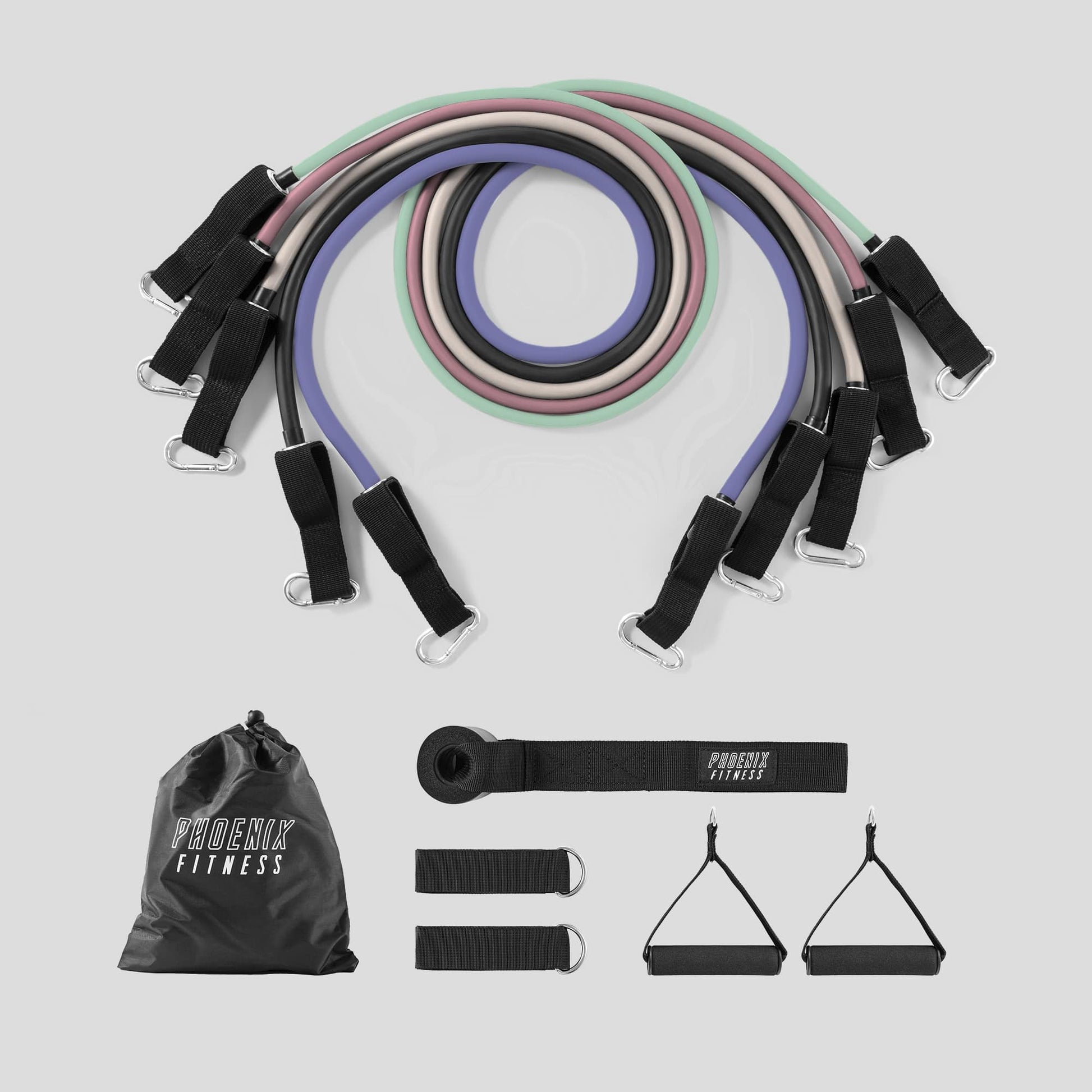 5 colour-coded bands ranging from 10lbs to 50lbs, allowing you to adjust resistance for strength, flexibility, and endurance training.
